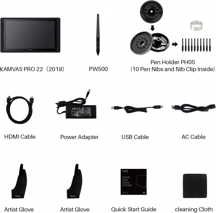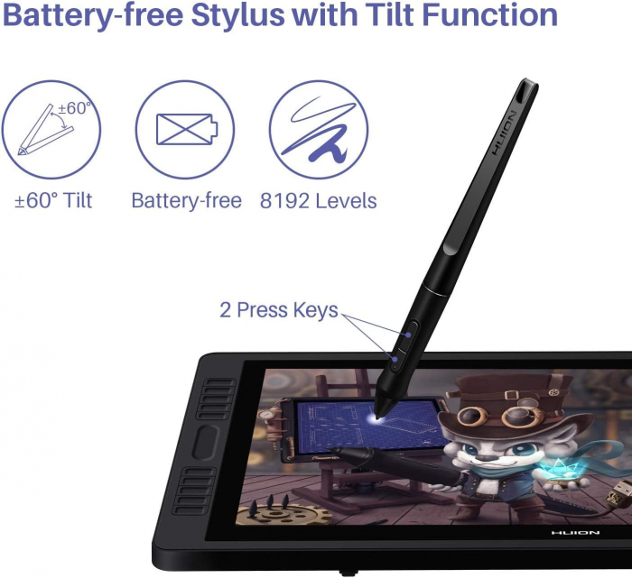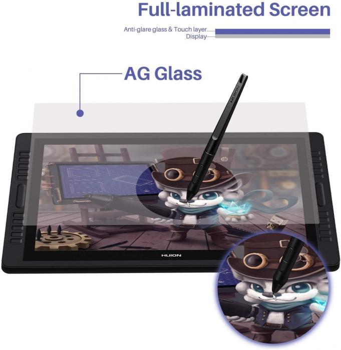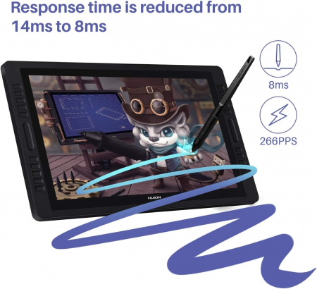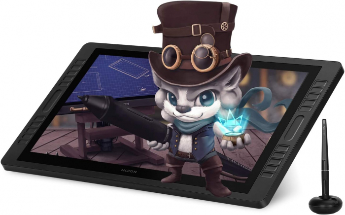 Tableta grafica Huion KAMVAS Pro 22, Functie de inclinare, Stilou fara baterie, Presiune 8192, 20 de taste, 2 bare tactile, 21.5'', Negru